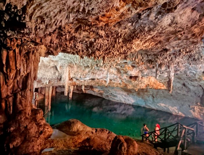 游览埃克纳坎(Eknakán),参观圣何塞德埃克纳坎教堂(San José de Eknakán)。该州 5 座新哥特式教堂之一。在游览过程中,您将参观帕莱索-帕帕卡尔(Paraiso Papakal)溪洞,这是大自然中隐藏的宝藏,这里有一个美丽的封闭式溪洞,您可以在这里自由夜泳